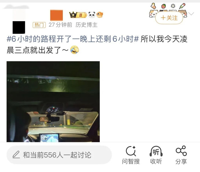 当日,话题“6小时的路程开了一晚上还剩6小时”冲上热搜,9月30日提前出门的“聪明”人堵在路上了,10月1日出门的人也没躲过。